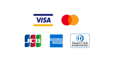 VISA、MasterCard、JCB、American Express、Diners のマークがついているクレジットカードをご利用いただけます。